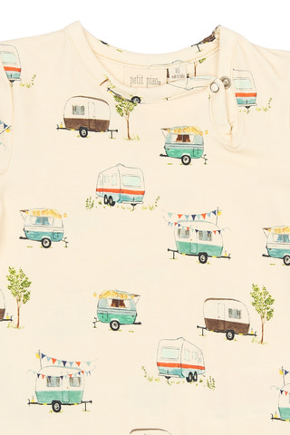 Sun Kortärmad Body från Petit Piao är ett härligt plagg för de minsta, tillverkat i en mjuk och stretchig blandning av 95% bomull och 5% elastan. Den kortärmade modellen är idealisk för varma dagar och ger barnet rörelsefrihet och komfort. Praktiska tryckknappar i grenen gör det enkelt att byta blöja och ta på eller av bodyn. Den stilrena och lekfulla designen passar både till vardags och fest, och materialet är skonsamt mot barnets hud. Perfekt för aktiva små barn som vill leka och upptäcka världen!