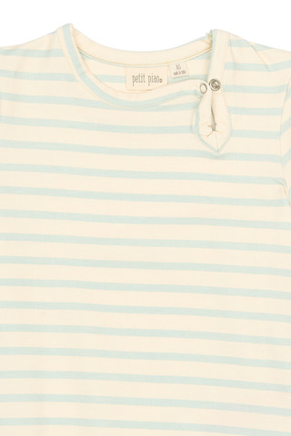 Sun Kortärmad Body från Petit Piao är ett härligt plagg för de minsta, tillverkat i en mjuk och stretchig blandning av 95% bomull och 5% elastan. Den kortärmade modellen är idealisk för varma dagar och ger barnet rörelsefrihet och komfort. Praktiska tryckknappar i grenen gör det enkelt att byta blöja och ta på eller av bodyn. Den stilrena och lekfulla designen passar både till vardags och fest, och materialet är skonsamt mot barnets hud. Perfekt för aktiva små barn som vill leka och upptäcka världen!