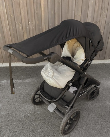 Lämplig för att skydda ditt barn mot skadlig sol och UV-strålning. Den är tillverkad av slitstark polyester med hög UV-skydd. De justerbara sidobanden gör den tillräckligt mångsidig för att användas på olika modeller av sittvagnar, och den kan fästas på Easygrow myggnät.