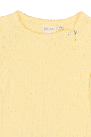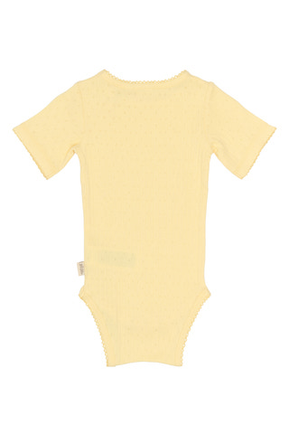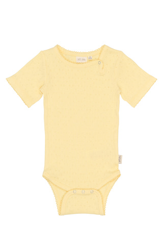 Suze Kortärmad Pointelle Body från Petit Piao är ett perfekt plagg för de minsta under varma dagar. Den är tillverkad i ett mjukt och luftigt pointelle-material som känns behagligt mot huden och ger extra komfort. Den kortärmade designen gör bodyn sval och skön, samtidigt som den stilrena färgen Mellowyell ger ett modernt och lekfullt uttryck. Praktiska tryckknappar i grenen underlättar vid blöjbyten och gör det enkelt att ta av och på bodyn. Suze Pointelle Body är ett mångsidigt basplagg som passar lika bra till vardags som till fest, och är ett uppskattat tillskott i barnets garderob.