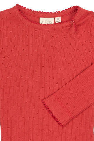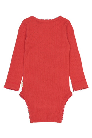 Suze Långärmad Pointelle Body från PETIT PIAO är ett perfekt basplagg för de minsta. Den är tillverkad av 100% ekologisk bomull, vilket gör den extra mjuk och behaglig mot barnets hud. Det fina pointelle-mönstret ger bodyn en klassisk och söt look, medan de långa ärmarna håller barnet varmt under kyligare dagar. Med tryckknappar i grenen blir blöjbyten enkla och smidiga. Bodyn är dessutom skonsam mot känslig hud och passar lika bra till vardags som till festligare tillfällen.