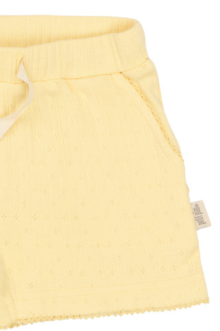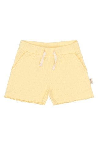 Suze Pointelle Shorts från Petit Piao är ett perfekt val för varma sommardagar. Dessa shorts är tillverkade av 100% ekologisk bomull, vilket gör dem både mjuka och skonsamma mot barnets hud. Den fina pointelle-stickningen ger en extra söt detalj och gör shortsen luftiga och bekväma. Med en justerbar midja och praktiska sidfickor är de både funktionella och stilrena. Den milda gula färgen passar till det mesta och ger en glad känsla till barnets garderob. Perfekta för lek, utflykter eller bara en avslappnad dag hemma!