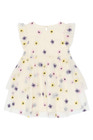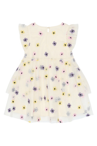 Svelda Klänning från The New Siblings är en drömmig och lekfull klänning som passar lika bra till kalas som till vardags. Klänningen är tillverkad i en mjuk blandning av bomull och polyester, vilket gör den både bekväm och lättburen. De broderade blommorna i lila, rosa och gult ger ett livfullt och charmigt intryck, medan volangärmar och lager-på-lager kjolen skapar extra volym och rörelse. En knapp i nacken gör klänningen enkel att ta på och av. En riktig favorit för små modeälskare!