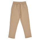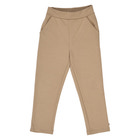 Byxorna är tillverkade i en tunn sweatshirtkvalitet med borstad insida som ger extra värme och en supermjuk känsla mot huden. Kvaliteten är tjockare än vanlig jersey, men lättare än klassiska sweatpants – perfekt för övergångsperioder och inomhusbruk.
