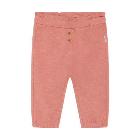 Joggingbyxor - Rosette från Minymo är ett utmärkt val för vardagsbruk, där komfort och rörelsefrihet är viktigt. Byxorna är tillverkade i ett mjukt, stretchigt tyg som känns skönt mot huden och låter ditt barn leka och röra sig fritt hela dagen. Den vackra rosetfärgen ger en feminin och modern look, medan de små hjärtknapparna framtill ger en extra söt touch. Byxorna har resår i midjan, vilket ger en bra och flexibel passform, och resår i anklarna, så att de sitter bra utan att vara för trånga. Joggingbyxorna är lätta att ta på och av, vilket gör dem perfekta för förskola och mysiga stunder hemma.