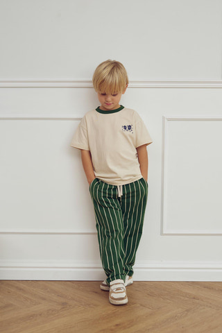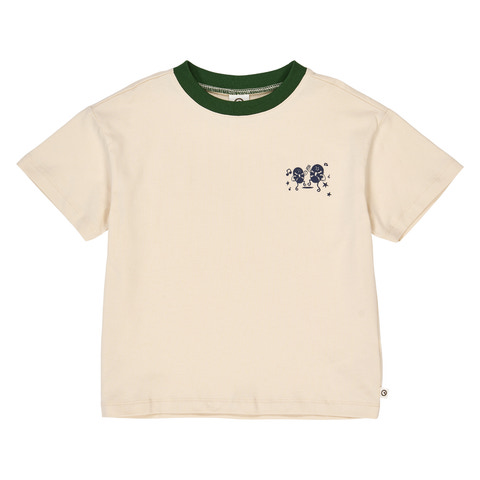 En mjuk och skön T-shirt i stretchig singeljersey, perfekt för aktiva barn med stilkänsla. På bröstet finns ett fint och livligt tryck med dansande figurer som ger en lekfull touch. Den kontrastfärgade ribbade kanten i halsen ger T-shirten en modern och sportig twist.