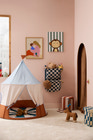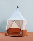 Cirkustältet är det perfekta tillbehöret för barnrummet eller vardagsrummet, där det inbjuder till timmar av lek och fördjupning. Med sitt charmiga cirkusutseende och mjuka färger skapar tältet en magisk atmosfär där barnen kan låta fantasin flöda – vare sig det är som cirkusartist, trollkarl eller bara som en mysig läshörna. Tältet är rymligt och har en öppning framtill, vilket gör det enkelt att krypa in och ut, och de små fönstren på sidorna ger både ljus och möjlighet att hålla ett öga på omgivningen. Det är enkelt att sätta upp och ta ner, så det kan flyttas runt efter behov eller packas undan när det inte används. Tältet är tillverkat av slitstarka material som tål många timmars lek, och det mjuka golvet gör det extra bekvämt att sitta eller ligga i. Perfekt för lek, avkoppling och som en mysig gömställe där ditt barn kan få lite lugn och ro från vardagens många intryck.