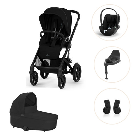 I detta kompletta paket ingår Talos S Lux barnvagn, Cot S Lux liggdel, Cloud T I-Size babyskydd, Bas T och adaptrar.