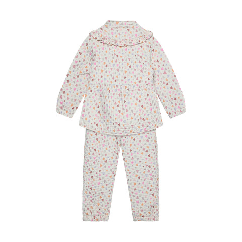 Termodräkten med volanger från En Fant är ett sött och praktiskt val för kyliga dagar när ditt barn behöver lite extra värme. Setet består av en jacka och byxor, båda med söta volanger som ger en feminin och charmig look. Materialet är mjukt och bekvämt, så att ditt barn kan leka och röra sig fritt utan att kläderna känns åtsittande eller obekväma. Termoset är perfekt som övergångskläder på våren och hösten, men kan också användas som ett extra lager under regnkläder eller en snöoverall på kalla vinterdagar. Det är lätt att ta på och av, och de vackra detaljerna gör det till ett populärt val bland både barn och föräldrar. Setet är designat med fokus på komfort och funktionalitet, så att ditt barn kan hålla sig varmt och samtidigt se snyggt ut. En Fant är känt för sin goda kvalitet och fina design, och detta termounderklädeset är inget undantag. Det är lättskött och kan tvättas om och om igen utan att förlora sin form eller färg. Perfekt för både skola och fritid, där slitstarka och bekväma kläder behövs.