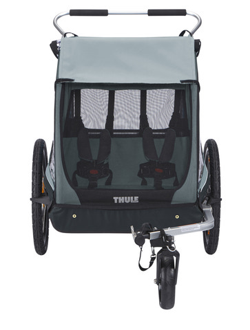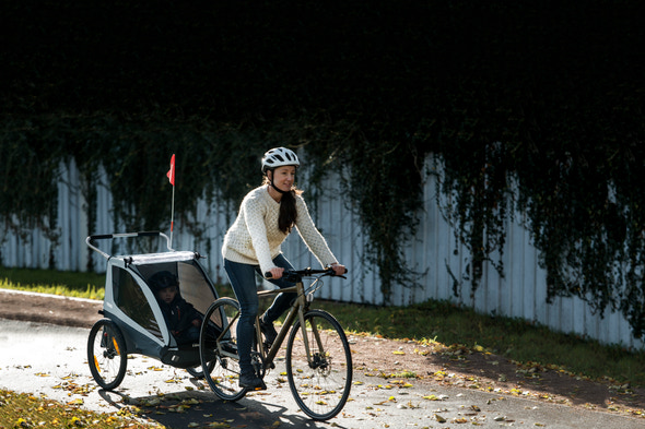 Thule Coaster XT är en slitstark cykelkärra som garanterar en säker och bekväm tur. Med ett justerbart styre och extra förvaringsutrymme samt enkel och kompakt hopfällning är den lätt att transportera. Thule Coaster XT använder det patenterade ezHitch-systemet för enkel och snabb koppling till cykeln, vilket gör den perfekt för både hektiska pendlingsresor och avkopplande fritidsaktiviteter. Levereras med både ett cykelvagnsset och ett barnvagnsset, så att du enkelt kan omvandla den till en barnvagn när du har nått din destination, eller bara fortsätta en härlig cykeltur. Ett stort bagageutrymme ger dig möjlighet att transportera leksaker, snacks eller dagliga nödvändigheter. Rymliga säten rymmer bekvämt två barn för roliga och säkra familjeäventyr. Ergonomiskt, justerbart handtag säkerställer en perfekt passform för alla föräldrar när Thule Coaster XT används som barnvagn.