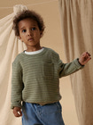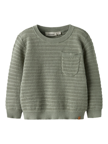 Thunder Knitted Jumper från Lil' Atelier är en vacker och klassisk tröja som kombinerar komfort med en stilren look. Den mjuka stickningen är perfekt för både vardagsbruk och festliga tillfällen, och det fina strukturerade mönstret ger tröjan en modern och tidlös look. Bröstfickan är både praktisk och dekorativ, medan de ribbade kanterna säkerställer en bra passform och håller tröjan på plats. Färgen Seagrass är lugn och naturlig, vilket gör tröjan lätt att kombinera med andra plagg i garderoben. En idealisk tröja för kyliga dagar när ditt barn behöver vara både varmt och snyggt klätt.