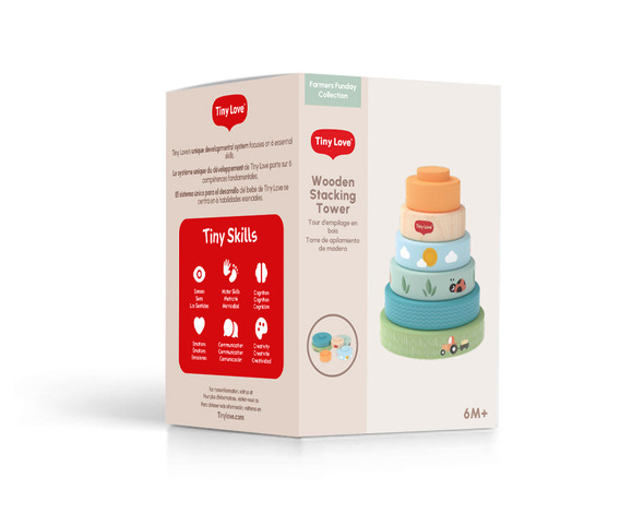 Stapeltornet är tillverkat av trä från ansvarsfullt skötta skogar och utformat för att stödja barnets tidiga motoriska och kognitiva utveckling. När barnet griper, placerar och balanserar skivorna tränas finmotorik, hand-öga-koordination och förståelse för storlek, ordning och struktur. En tidlös klassiker som växer med barnet och ger massor av möjligheter till taktil fördjupning och förundran – med en touch av värme och charm från Farmers Funday-universumet.