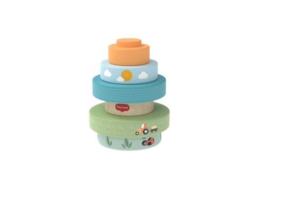 Wooden Stacking Tower uppmuntrar små barn att utforska leken på sina egna villkor genom att stapla, sortera och leka fantasifullt. Med sex träskivor i olika storlekar och färger kan barnet bygga torn, stapla fritt, öva på att sortera efter färg och storlek eller använda skivorna i rollspel. Möjligheterna är många – och leken är alltid kreativ och utvecklande.