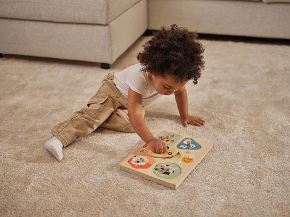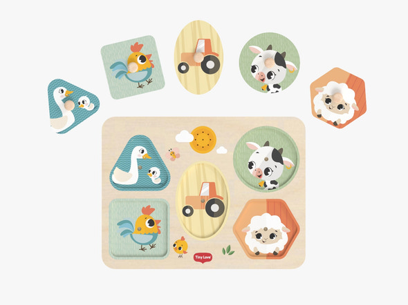 My First Sound Puzzle från Tiny Love är skapad för att stödja barnets utveckling redan från de allra första lekstegen. Inspirerad av livet på bondgården kombinerar pusslet naturmaterial med interaktiva ljud, så att barnet på ett lekfullt sätt upptäcker nya samband mellan djur, former, ljud och rörelse. Det är ett pussel som både inbjuder till självständigt fördjupande lek och mysiga stunder tillsammans med en vuxen – allt förpackat i en varm och igenkännlig bondgårdsvärld som fångar små barns uppmärksamhet.