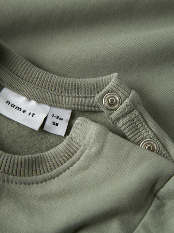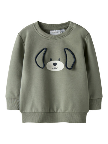 Tobias Sweatshirt - Shadow från NAME IT är en söt och bekväm tröja för de små. Tröjan är tillverkad i ett mjukt material som känns skönt mot huden och ger rörelsefrihet för lek och vardagsbruk. Den söta hundapplikationen på framsidan har en 3D-effekt med broderade öron, vilket gör tröjan extra rolig och charmig för barn. Ribbade kanter vid ärmar, hals och nederkant säkerställer en bra passform och hjälper till att hålla kylan ute. Perfekt för både skolan och mysiga stunder hemma, där komfort och söt design går hand i hand.