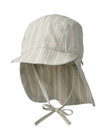 Tonga UV Solhatt från Wheat är den perfekta solhatten för barn som vill leka ute i solen. Hatten har en bred skärm och ett extra nackskydd som skyddar både ansikte och nacke mot solens starka strålar. Med justerbara knytband under hakan sitter hatten säkert även när det blåser. Det lätta materialet är snabbtorkande och bekvämt, vilket gör hatten idealisk för både strand och lekplats. Den stilrena designen med blåa ränder gör att solhatten passar till de flesta sommaroutfits och är ett smart val för aktiva barn.