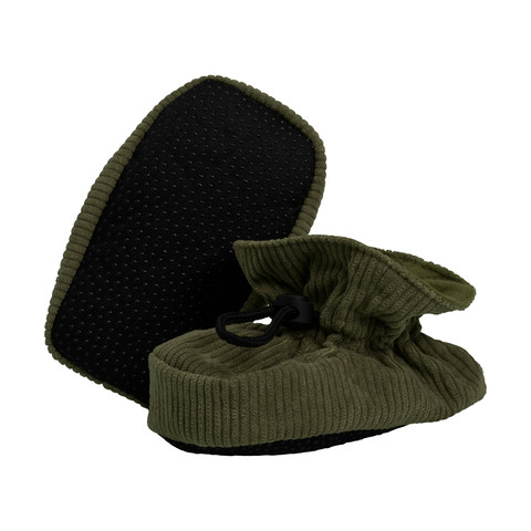 Praktiska babytofflor med struktur i tyget och supermjukt foder inuti. Tofflorna sitter bra på foten med en smart justerbar stängning runt ankeln, som enkelt kan spännas och lossas, så att du säkerställer att tofflorna förblir på foten. De supermjuka och halkfria sulorna gör det möjligt för barnet att känna marken när de tar sina första steg.
