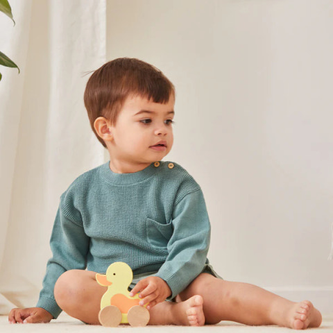 Denna träanka på hjul är en charmig och tidlös leksak, utformad för att inspirera till kreativitet och aktiv lek. Denna söta anka är tillverkad av högkvalitativt trä med en slät, naturlig yta och har robusta trähjul som gör att den rullar lätt över olika ytor. Den enkla men lekfulla designen gör den lätt att greppa och skjuta med för små händer, vilket stärker finmotoriken, koordinationen och den fantasifulla berättarförmågan. Med sina mjuka, rundade kanter och minimalistiska estetik passar denna klassiska träanka vackert in i alla lekrum eller barnkammare. Oavsett om den används för självständigt lekande eller som en del av en samling är träankan på hjul ett härligt och miljövänligt val för små upptäcktsresande.