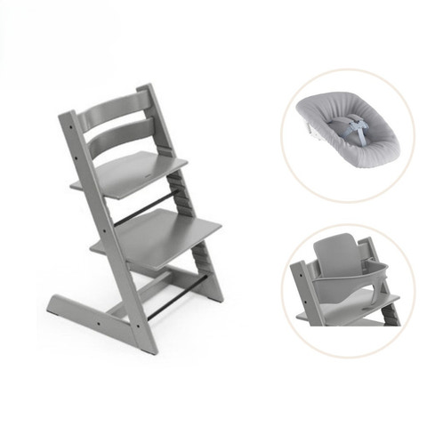 Här ingår Tripp Trapp® Newborn Set och Babyset, så att barnet kan sitta med vid bordet redan från början.