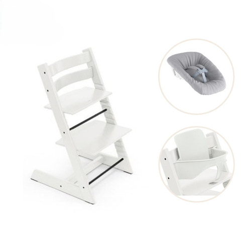 Här ingår Tripp Trapp® Newborn Set och Babyset, så att barnet kan sitta med vid bordet redan från början.