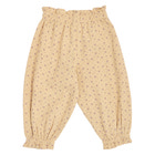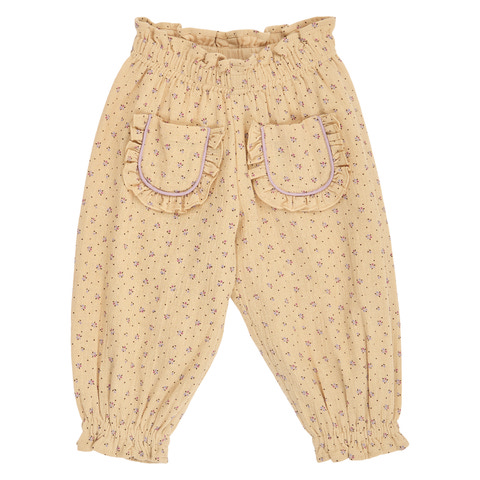 Tulip Volym Byxor från Müsli är ett par charmiga och bekväma byxor för barn, tillverkade i 100% bomull som känns mjuk mot huden. Byxorna har en generös volym och resår i midjan samt vid bensluten, vilket ger en skön passform och gör dem enkla att ta på och av. De praktiska fickorna är perfekta för små skatter och det fina blommönstret i dova färger ger en lekfull och stilren look. Passar lika bra till vardags som till festligare tillfällen och är ett utmärkt val för barn som vill röra sig fritt och bekvämt.