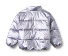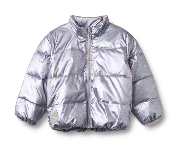 Ullu Lättvikts Puffer Jacka från Wheat är en stilren och funktionell jacka för barn, designad för att hålla värmen under kyliga dagar. Jackan har en glansig silverfärgad yta med ett diskret blommönster som ger ett lekfullt uttryck. Den är tillverkad i mjuk polyester som är både lätt och slitstark, vilket gör den bekväm att bära och enkel att röra sig i. Jackan har elastiska muddar vid ärmslut och nederkant som hjälper till att hålla kylan ute, samt en praktisk dragkedja framtill för enkel av- och påklädning. En reflekterande detalj på jackan ökar säkerheten i mörker. Ullu Puffer Jacka är ett utmärkt val för både vardag och lek utomhus.
