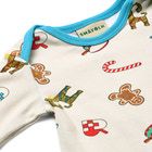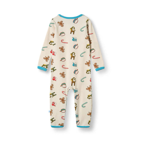 Baby jumpsuit med julmotiv, tillverkad i ekologisk stretchbomullsjersey. Overallen är OEKO-TEX Standard 100®-certifierad, vilket innebär att den har testats för skadliga ämnen så att du kan skydda ditt barns hud och hälsa.