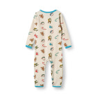 Material: 95 % ekologisk bomull, 5 % elastan. Certifiering: OEKO-TEX STANDARD 100®. Tvättråd: Maskintvätt 30°, blek inte, torktumla inte, stryk på låg temperatur, kemtvätta inte. Vi rekommenderar att du vänder jumpsuiten ut och in före tvätt för att skydda färgerna och trycket.