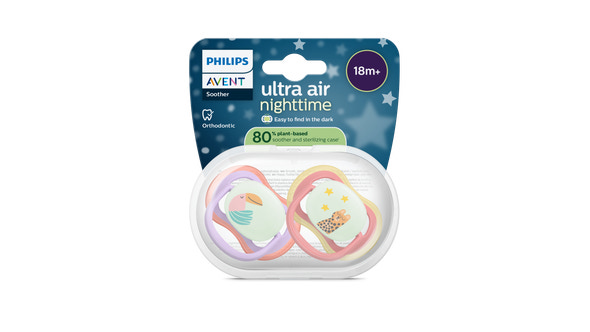 Tack vare funktionen som lyser i mörkret slipper du väcka ditt barn när nappen spottas ut eller tappas. Du behöver inte tända lampan, eftersom nappen lyser så att du snabbt kan hitta den.