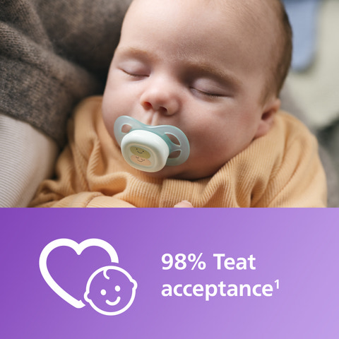 Den symmetriska silikonsnuten följer den naturliga formen på gommen, tänderna och tandköttet, vilket stödjer ditt barns munutveckling. Den silkesmjuka silikonsnuten känns otroligt mjuk och flexibel med en naturlig yta som ditt barn omedelbart kommer att acceptera. Med en anmärkningsvärd acceptansgrad på 98 %*, enligt Philips Avent, är det tydligt att nappen är en favorit bland de små. Nappens hållbarhet garanteras eftersom den är tillverkad av 100 % medicinsk silikon i Nederländerna, vilket säkerställer att den är BPA-fri och säker att använda.