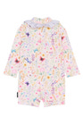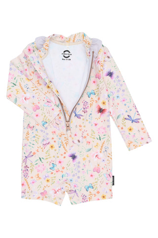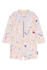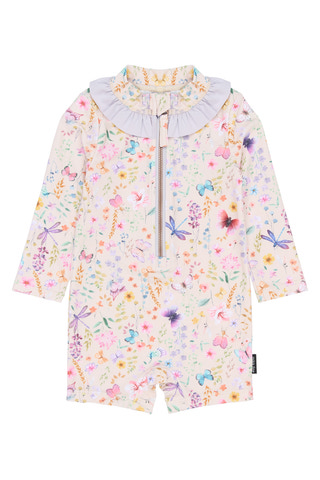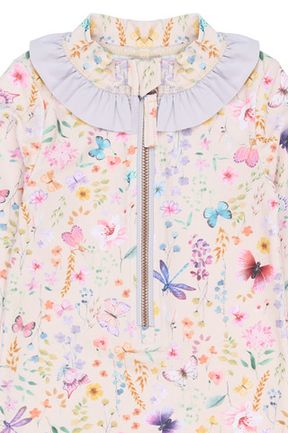 UV-dräkt med tryck från Mikk-Line är det perfekta valet för lek i solen! Dräkten är tillverkad i en mjuk och stretchig blandning av polyester och elastan, vilket ger en skön passform och rörelsefrihet. Det vackra fjärilsmönstret och den dekorativa volangkragen gör dräkten extra charmig. Med lång dragkedja framtill blir det enkelt att ta av och på dräkten, även när barnet är blött. Materialet är snabbtorkande och slitstarkt, vilket gör dräkten idealisk för både strand och pool. UV-skyddet ger extra trygghet under soliga dagar, så att ditt barn kan leka säkert och bekvämt.