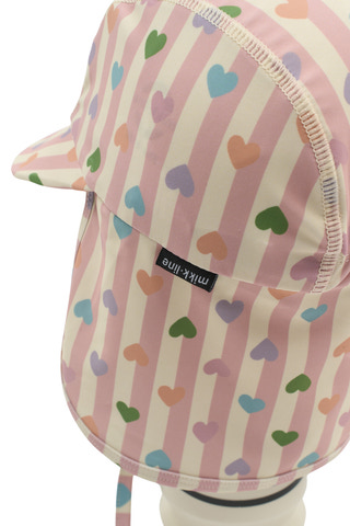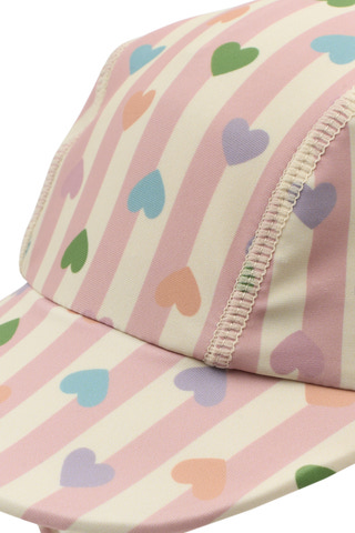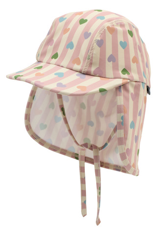 Mönstrad badhatt från Mikk-line som skyddar barnets huvud och nacke mot solen när det leker vid poolen eller på stranden. Hatten har en lång skärm som täcker nacken och en kort skärm som skyddar ansiktet och ger skugga för ögonen. Knytbanden hjälper till att hålla hatten på plats. Kombinera gärna med matchande badkläder från Mikk-line.