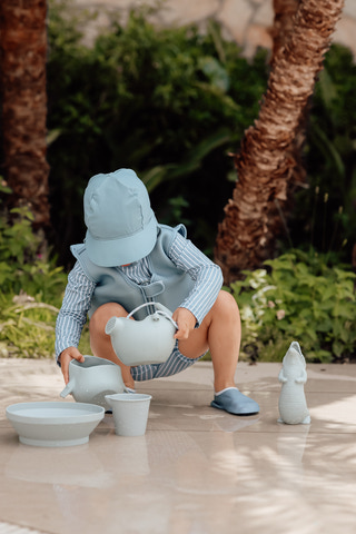 Solhatten från Vanilla COPENHAGEN är det perfekta valet för soliga dagar när ditt barn behöver skydd mot solens starka strålar. Den är tillverkad av lätt, andningsbar polyester, vilket garanterar komfort även under de varmaste dagarna. Den praktiska nackskyddet ger extra skydd för nacken, så att ditt barn kan leka fritt utan bekymmer. Kepsens bekväma passform sitter bra på huvudet och stör inte vid aktivitet. Den snygga designen i blått gör den lätt att matcha med sommarens garderob och den är perfekt för stranden, lekplatsen och utflykter.
