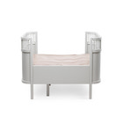 Sebra Bed Baby & Jr. växer och utvecklas med ditt barn och ger en trygg miljö där ditt barn kan sova gott och bekvämt. Inte bara sängen utvecklas, utan även ditt barn får möjlighet att växa och utvecklas. Sängen är en generationssäng som kan ärvas – från barn till barn, från familj till familj. En del av dansk designhistoria och en trygg och säker utdragbar säng för spädbarn och småbarn. Sebra-sängen kan användas från födseln, med sängbotten höjd till mitten så att det är lättare att lyfta in och ut barnet ur sängen under de första månaderna. Den höjda sängbotten gör det lättare att få ett bra och säkert grepp om barnet när man lyfter upp det, och samtidigt kan föräldern bättre stödja barnets huvud och nacke när man lägger det i sängen, eftersom avståndet till sängbotten inte är så långt – det är både säkert för barnet och bättre för förälderns rygg. När barnet växer till en liten toddler som börjar visa tecken på att kunna sitta upp eller krypa, sänks sängbotten. Kom ihåg att lägga till en madrass och andra tillbehör för att skapa en trevlig sovmiljö för ditt barn.