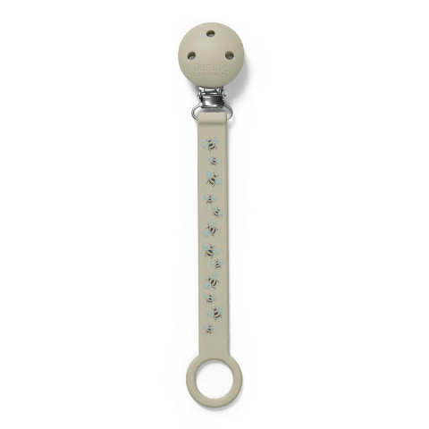 Vanilla Copenhagen silikonnapphållare! Praktisk napphållare i silikon för din bebis. Den är mjuk, allergivänlig och fri från skadliga ämnen. Perfekt för att hålla nappen ren och inom räckhåll. En napphållare är det perfekta tillbehöret när du är på språng för att hålla ditt barns napp fäst vid kläderna. Napphållaren har andningshål i klämman och en universalring som passar de flesta nappar.Handtvätt med mild tvål och vatten.
