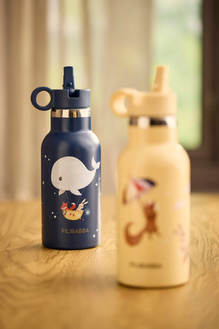 Den är dekorerad med magiska illustrationer som väcker fantasin och äventyrslusten. Med sin kompakta storlek och lätta vikt är flaskan perfekt för små händer.