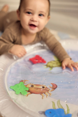 Föreställ dig glädjen hos ditt barn när det upptäcker en värld under vågorna. FILIBABBA:s vattenlekmatta bjuder in barn till ett förtrollande undervattensäventyr, där färgglada havsdjur simmar genom mjuka vågor. Det är en plats där nyfikenheten kan blomstra och magliggande blir en resa fylld av förundran och upptäckter.