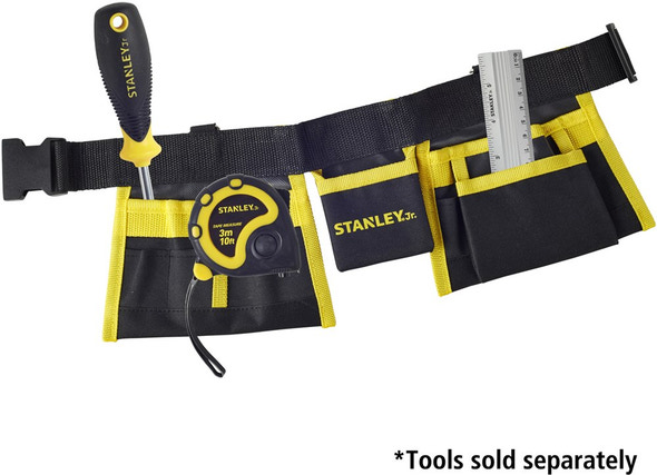 Denna coola verktygsbälte är perfekt för små hantverkare som vill ha händerna fria och verktygen nära till hands – precis som de vuxna! Med en design som liknar ett riktigt Stanley-verktygsbälte får barnen en autentisk upplevelse som gör rollspelet ännu mer spännande.