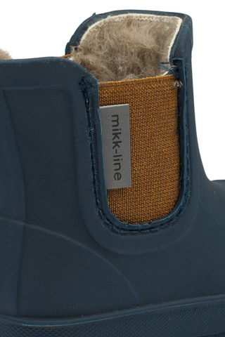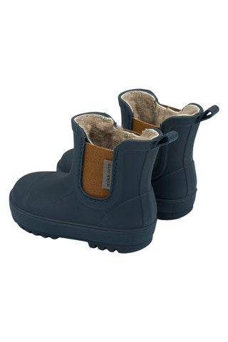 Mikk-line korta vintergummistövlar är tillverkade med flexibla barfotsulor, naturgummi och är ftalatfria. Gummistövlarna är speciellt utformade för små barn, eftersom de gör det lättare för dem att gå, sitta och leka utan långa stövelskaft. Dessa enfärgade gummistövlar är vattentäta och praktiska för barn som älskar att hoppa i pölar eller gå på vått gräs.