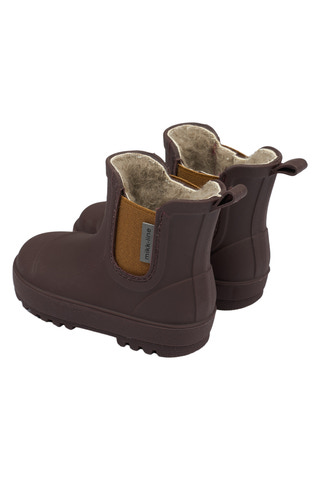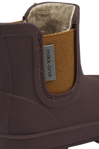 Mikk-line korta vintergummistövlar är tillverkade med flexibla barfotsulor, naturgummi och är ftalatfria. Gummistövlarna är speciellt utformade för små barn, eftersom de gör det lättare för dem att gå, sitta och leka utan långa stövelskaft. Dessa enfärgade gummistövlar är vattentäta och praktiska för barn som älskar att hoppa i pölar eller gå på vått gräs.