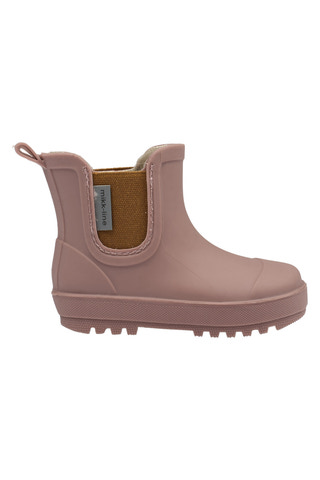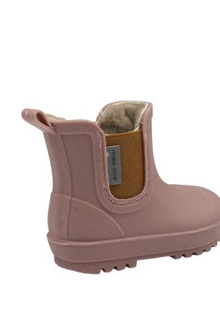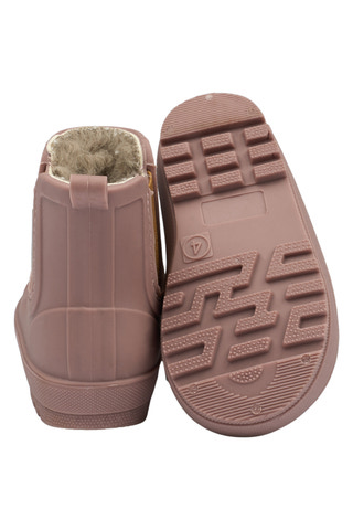 Mikk-line korta vintergummistövlar är tillverkade med flexibla barfotsulor, naturgummi och är ftalatfria. Gummistövlarna är speciellt utformade för små barn, eftersom de gör det lättare för dem att gå, sitta och leka utan långa stövelskaft. Dessa enfärgade gummistövlar är vattentäta och praktiska för barn som älskar att hoppa i pölar eller gå på vått gräs.