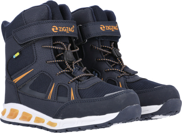 Alla barn älskar den supercoola Clementu-stöveln från ZIGZAG! Med en häftig design som inkluderar integrerad LED-belysning i sulan och en bra passform är denna modell en favorit. Yttermaterialet är vattentätt, andningsbart och bekvämt att bära. Snabbsnörningen och kardborrestängningen säkerställer en tät passform och ett säkert fotfäste. Sulan är utrustad med bekväm stötdämpning och är gjord av TPR. Extra reflexer ger god synlighet i mörker och trafik.