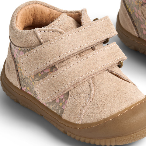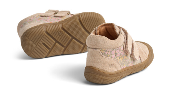 Wheats förskoskor är lätta, flexibla och bekväma för ditt barn att röra sig i. De är utformade för att skydda små fötter som ger sig ut på sina första äventyr. Skon har dubbla kardborreband som säkerställer en bra passform runt foten. Samtidigt gör kardborrebanden det lättare att öppna skon helt så att du kan sätta in foten direkt i skon. Prewalkern är tillverkad av krom- och metallfritt garvat läder med detaljer i mocka på hälkappan. Skon har en mjuk latexinnersula täckt med krom- och metallfritt garvat läder. Latex är ett naturmaterial som är andningsbart och flexibelt med en studseffekt för bekväma steg. Yttersulan är tillverkad av återvunnet TR-gummi, som är ett mycket slitstarkt och halkfritt material. Sulan på skon är utformad för att täcka tårna runt tåboxen för optimalt skydd. De har normal storlek och ett fast grepp om barnets fötter. Rekommenderad tillväxtmarginal: 10–15 mm Bekväma nybörjarskor med tryck och dubbel kardborreknäppning för ditt barn.