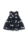 Tulleklänning med paljettrosetter och glittereffekt över hela klänningen.