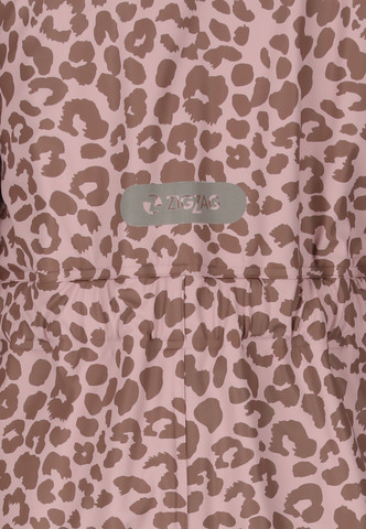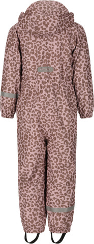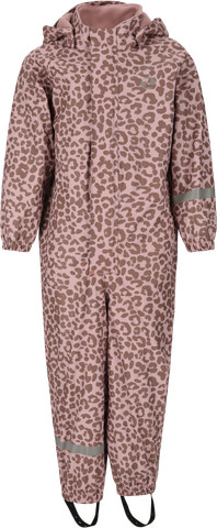 Zing Rain Suit från ZIG ZAG i Twilight Mauve är den perfekta regnklädseln för aktiva barn som älskar att leka utomhus – oavsett väder! Klädseln har ett modernt leopardmönster, vilket gör den extra rolig och snygg, samtidigt som den skyddar mot regn och vind. Den är designad med en praktisk dragkedja fram, vilket gör det enkelt för barn att ta på och av sig dräkten själva. Reflektorer på ärmarna och benen säkerställer att barnen syns i mörker och grått väder, vilket ger extra säkerhet. Elastiska muddar vid handlederna och anklarna gör att dräkten sitter tätt och håller ute vatten och vind, medan den avtagbara huvan ger flexibilitet efter behov. Dräkten har också justerbara fotremmar så att den passar bra över stövlar och skor.